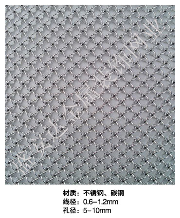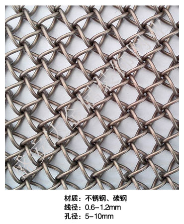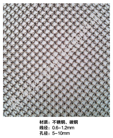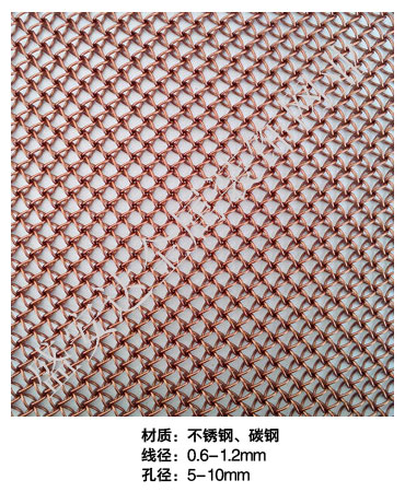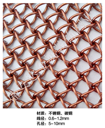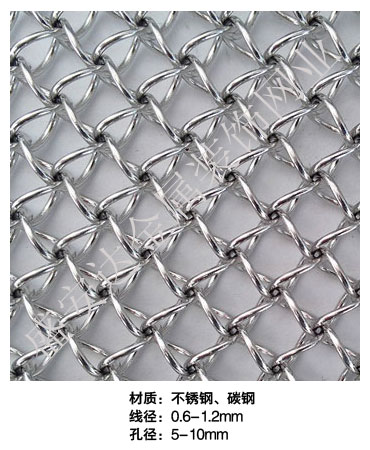 蜂巢網----,是一種新型建筑裝飾材料,采用優質不銹鋼,鋁合金等合金材料,經過特殊工藝編制而成,被賦予了傳統布簾所不具有的的折光效果,讓它具有了動感時尚的特點,再加上它的金屬質感的特點,給您的居室頓感典雅氣質非凡個性高貴品位,會使高檔賓館,餐廳,歌劇院,展廳變的富麗堂皇。